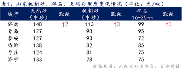 上周山東市場砂石價格、生產、銷售、需求情況如下: