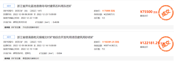 近日,據(jù)獲悉,浙江衢州開化縣一資源儲量8038.97萬噸、生產(chǎn)規(guī)模400萬噸/年、出讓年限20年的建筑石料用灰?guī)r,被浙江國昊建材有限公司以75500萬元(約7.55億元)競得,該礦涉及的政策處理費用合計55077萬元(約5.5億元),資源價款約為16.2元/噸。