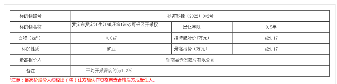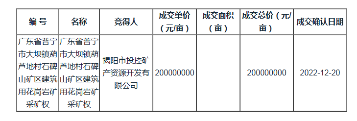 競得人名稱:揭陽市投控礦產(chǎn)資源開發(fā)有限公司。
