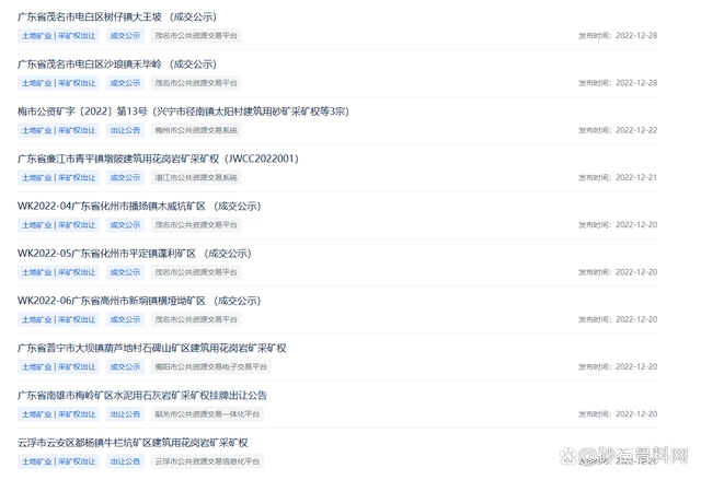 年底沖刺?!8天內(nèi)廣東成功出讓7宗礦權(quán)、掛牌4宗砂石礦
