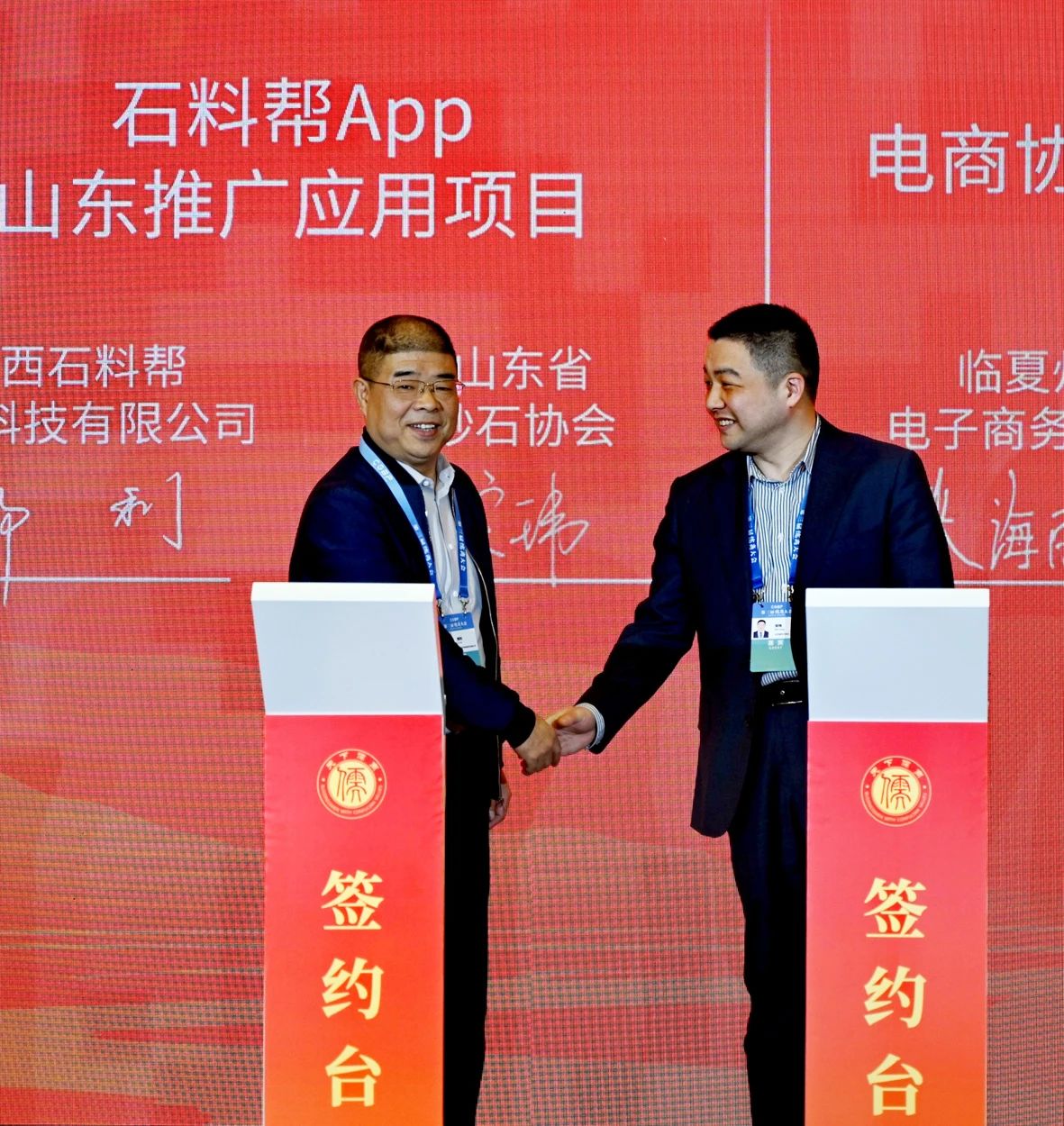 在第三屆儒商大會(huì)“電商協(xié)同助力黃河流域鄉(xiāng)村振興論壇”上,山東省砂石協(xié)會(huì)秘書長(zhǎng)宋瑋與陜西石料幫網(wǎng)絡(luò)科技有限公司董事長(zhǎng)郭利簽署戰(zhàn)略合作協(xié)議,成為第三屆儒商大會(huì)上耀眼的“建材風(fēng)采”。