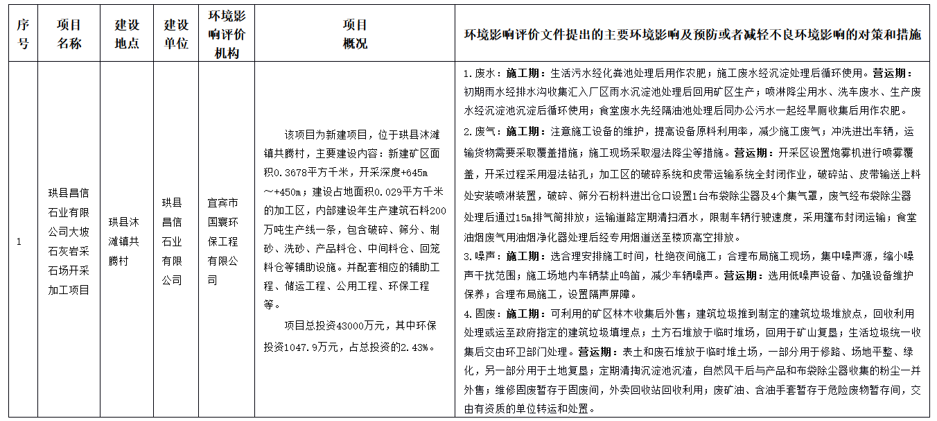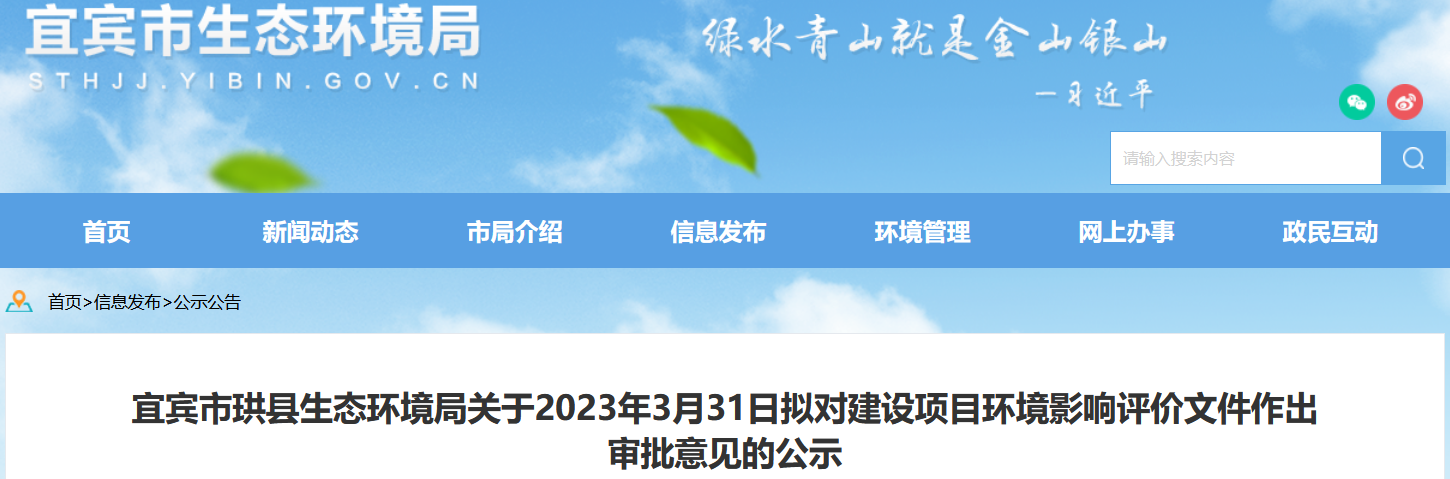 宜賓市珙縣生態(tài)環(huán)境局關(guān)于2023年3月31日擬對(duì)建設(shè)項(xiàng)目環(huán)境影響評(píng)價(jià)文件作出審批意見(jiàn)的公示