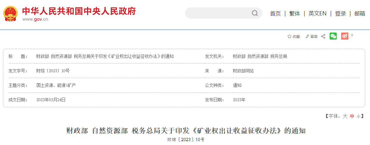 近日,財(cái)政部、自然資源部、稅務(wù)總局修訂印發(fā)《礦業(yè)權(quán)出讓收益征收辦法》(以下簡(jiǎn)稱《辦法》)。