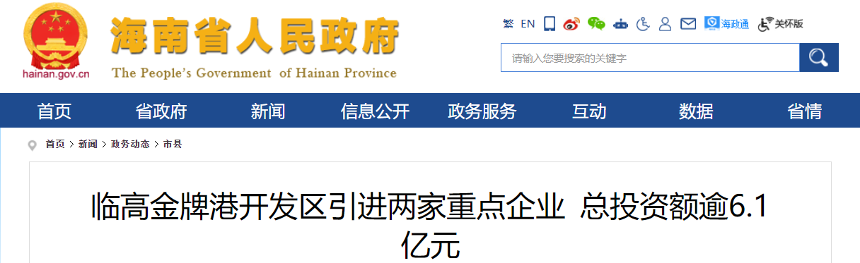 2023年4月23日,海南自貿(mào)港產(chǎn)業(yè)園區(qū)投資合作大會在海口召開。臨高縣政府在第四輪簽約儀式上簽約金標股份綠色環(huán)保裝配式隔聲屏障項目、中實環(huán)保海砂凈化項目。兩個重點項目總投資額逾6.1億元,都將落戶臨高金牌港開發(fā)區(qū)。