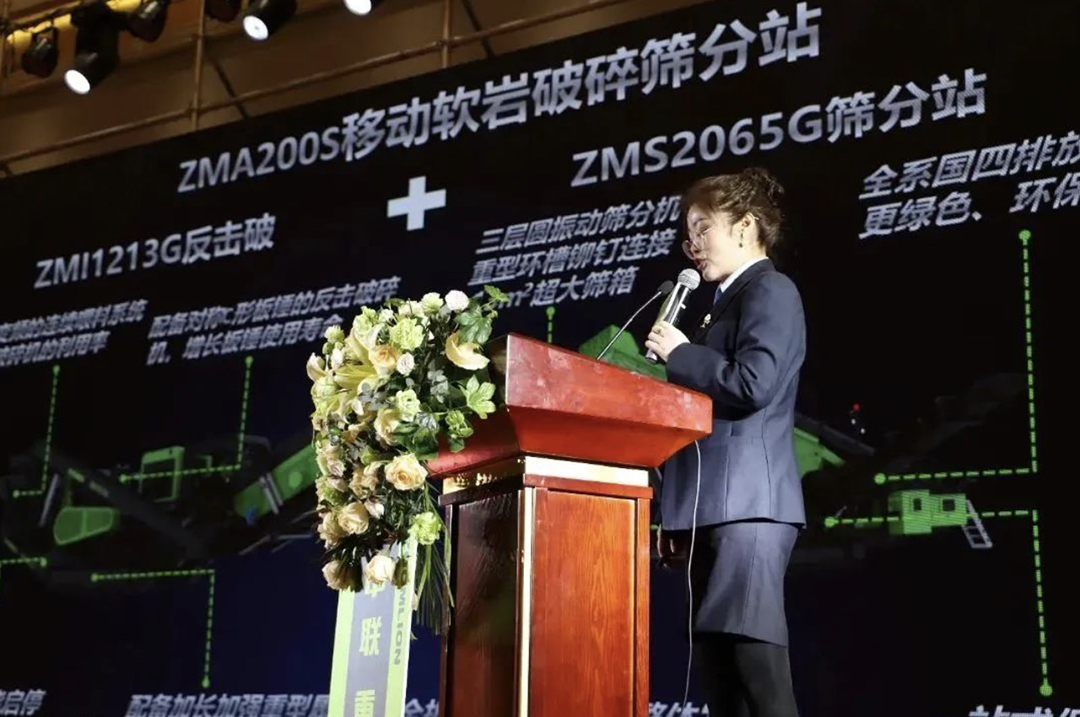 其中,中聯重科礦山機械事業部移動破產品銷售總監胡靈麗女士介紹了中聯重科移動破碎篩分設備的領先優勢。中聯新一代移動破產品系列包含4款移動破碎篩分站,可組合成時產200t的硬巖產線和時產200t的軟巖產線,滿足用戶對各種石料的破碎、篩分需求,是生產優質石料的利器。