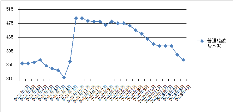 4月份,甘肅省水泥平均出廠價(jià)格每噸為370元,環(huán)比下降3.90%,同比下降22.92%。