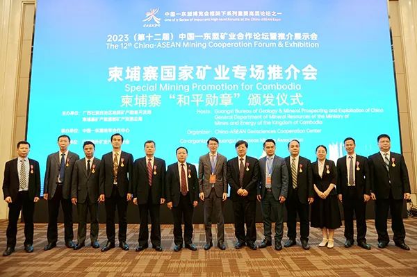 此次推介會(huì)還舉行了柬埔寨國家“和平勛章”頒獎(jiǎng)儀式,為主要參與柬埔寨國家地質(zhì)實(shí)驗(yàn)室建設(shè)的16名中方人員代表授予柬埔寨國家“和平勛章”。