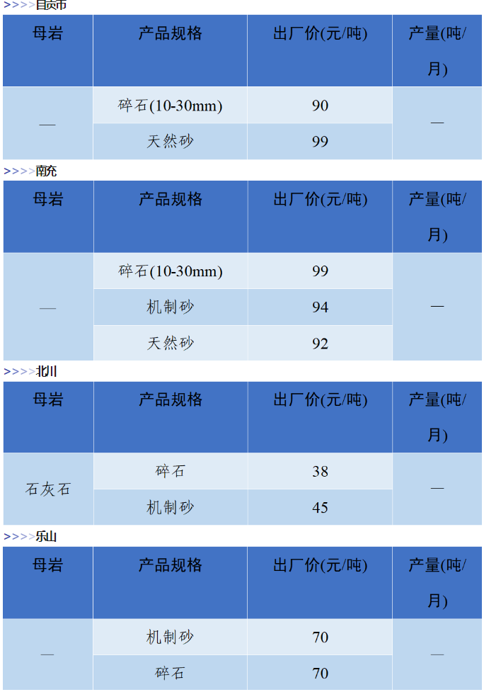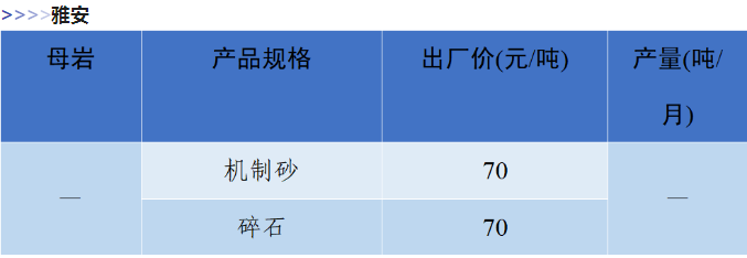 4月四川省砂石價(jià)格