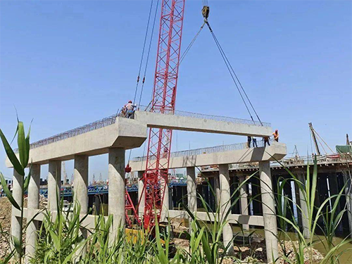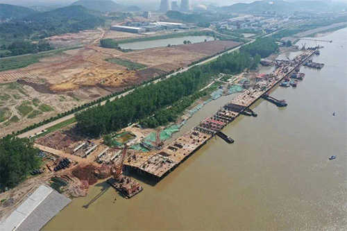 本項目當前有管理人員和作業(yè)工人合計290人,投入大型起重船舶6臺,鉆機40臺。項目目前已完成全部陸上樁基施工,正進行水上樁基施工,樁基已完成總量625根的80%,同時開展碼頭橫梁施工和變電所平臺澆筑施工等工序。本項目水工建筑物標段預計將于明年8月完成交工。