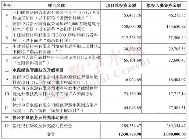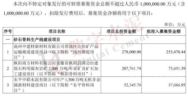 據(jù)悉,本次公開發(fā)行的可轉(zhuǎn)債募集資金,扣除發(fā)行費用后,擬用于砂石骨料生產(chǎn)線建設(shè)項目、水泥綠色智能技改升級項目、償還有息債務(wù)及補充流動資金。
