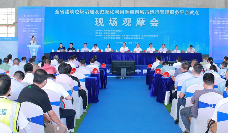 7月13日,2023年海南省建筑垃圾治理及資源化利用暨海南城市運行管理服務平臺試點現(xiàn)場觀摩會在中建五局文昌國際航天城科創(chuàng)平臺二期遙感衛(wèi)星項目順利舉行。