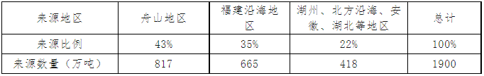 上海市建設(shè)用石主要來源是舟山地區(qū),占43%;其次是福建沿海地區(qū),占35%;再次為湖州、北方沿海、安徽、湖北等地區(qū),占22%。這個格局基本不變。
