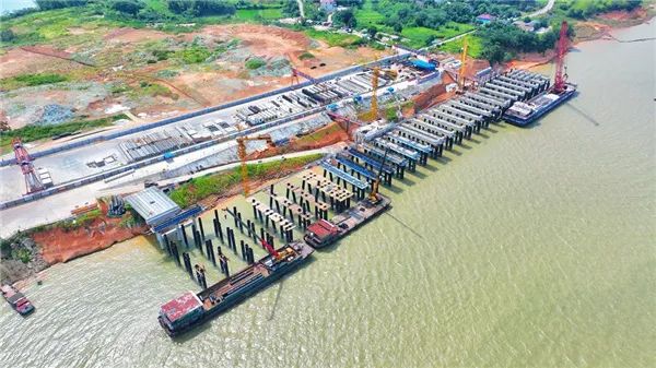 據了解,虞公港項目是湘江第一個采用結構預制件,并采取裝配式工藝的港口工程項目,其中包括鋼管樁386根、預制梁348片、面板525塊、空心板56片等,整個預制構件的預制與安裝是項目進度的關鍵因素。 目前,虞公港一期工程碼頭項目已完成上、下游碼頭平臺樁基95%、下橫梁澆筑35%、引橋工程50%,碼頭面預制構件完成了90%。接下來,項目將進行吊裝預制縱梁、預制縱梁上面吊裝疊合板、澆筑碼頭面磨耗層等附屬設施施工。