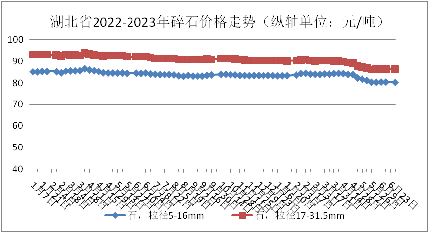 近日,湖北省價格監(jiān)測中心發(fā)布6月份湖北市場砂石價格,其中,天然砂(中粗砂)124.52元/噸、機制砂91.06元/噸,碎石(粒徑5-16mm)80.42元/噸、碎石(粒徑17-31.5mm)86.39元/噸,6月份湖北省砂石價格整體下降。