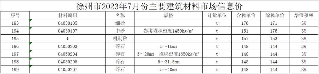 根據(jù)通知,2023年7月徐州市砂石價(jià)格如下: