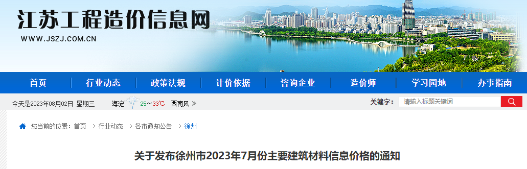 關(guān)于發(fā)布徐州市2023年7月份主要建筑材料信息價(jià)格通知