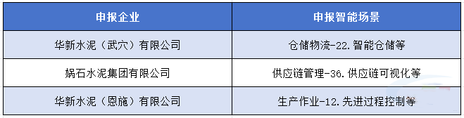8月1日,湖北省經(jīng)濟(jì)和信息化廳公示了2023年湖北省智能制造試點(diǎn)示范企業(yè)公示名單,其中包括華新水泥(武穴)有限公司倉(cāng)儲(chǔ)物流-22.智能倉(cāng)儲(chǔ)等、媧石水泥集團(tuán)有限公司供應(yīng)鏈管理-36.供應(yīng)鏈可視化等、華新水泥(武穴)有限公司倉(cāng)儲(chǔ)物流-22.智能倉(cāng)儲(chǔ)等,公示如下: