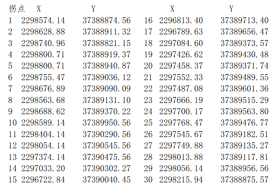 礦區(qū)范圍拐點(diǎn)坐標(biāo)如下表: