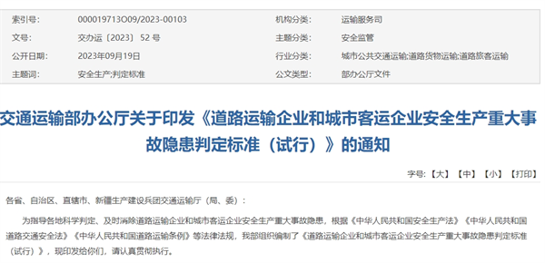 日前,為指導(dǎo)各地科學(xué)判定、及時(shí)消除道路運(yùn)輸企業(yè)和城市客運(yùn)企業(yè)安全生產(chǎn)重大事故隱患,交通運(yùn)輸部辦公廳發(fā)布了關(guān)于印發(fā)《道路運(yùn)輸企業(yè)和城市客運(yùn)企業(yè)安全生產(chǎn)重大事故隱患判定標(biāo)準(zhǔn)(試行)》的通知,自2023年10月1日起施行。通知明確,大貨車超載“百噸王”正式入刑,該新規(guī)或?qū)?duì)往后砂石運(yùn)輸產(chǎn)生重大影響!
