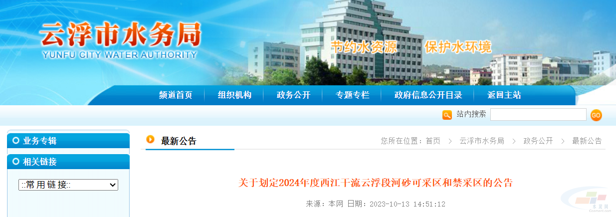 近日,云浮市水務局發布公告,明確2024年度西江干流云浮段河砂可采區和禁采區。公告顯示,西江干流云浮段劃定為2024年度河砂禁采區。