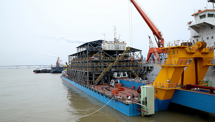 2015年04月07日,江蘇南通,正在進(jìn)行舾裝的“泰鑫1”海底采礦船。圖源:視覺(jué)中國(guó)