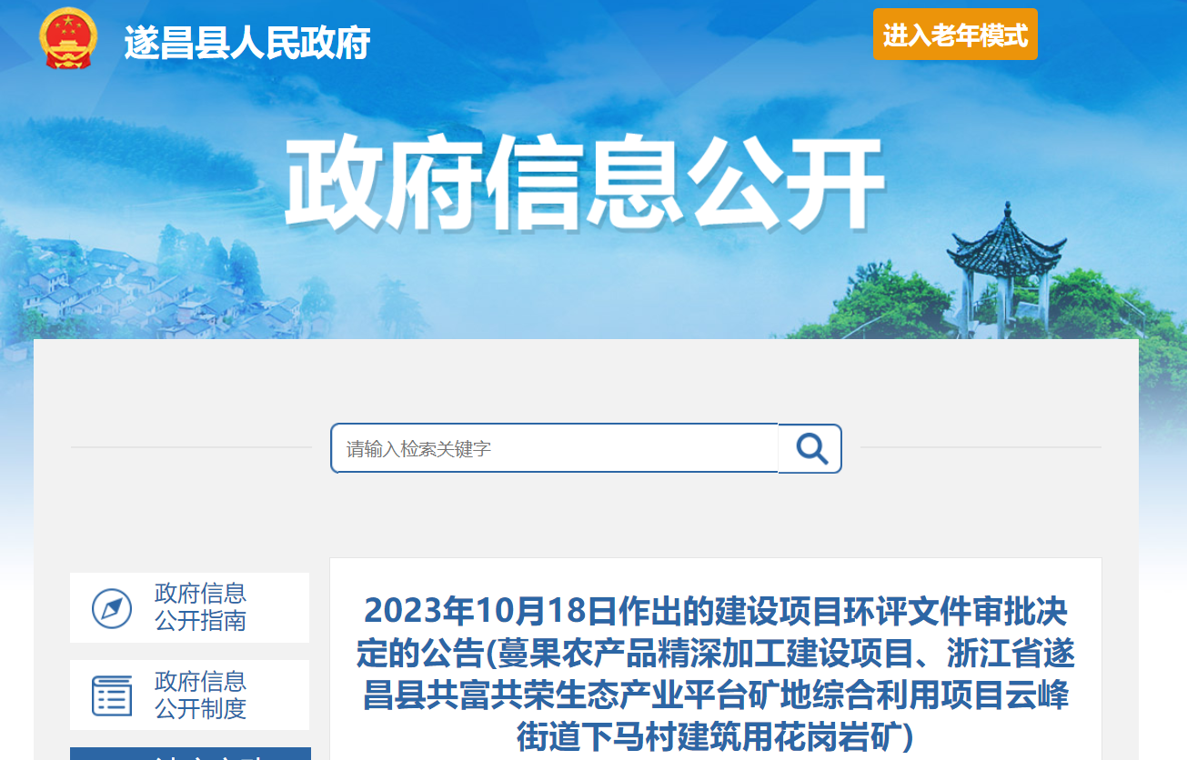 近日,浙江省麗水市生態(tài)環(huán)境局發(fā)布《遂昌縣共富共榮生態(tài)產(chǎn)業(yè)平臺礦地綜合利用項目云峰街道下馬村建筑用花崗巖礦環(huán)境影響報告表的審批意見》。根據(jù)《審批意見》:原則同意《報告表》結(jié)論,須嚴格按照《報告表》所列建設項目的性質(zhì)、規(guī)模、工藝、地點、環(huán)保措施等要求實施項目建設,并作為你單位環(huán)境保護管理的依據(jù)。
