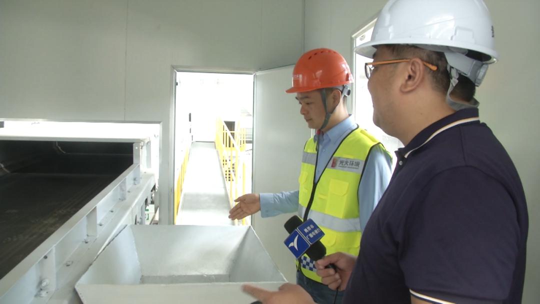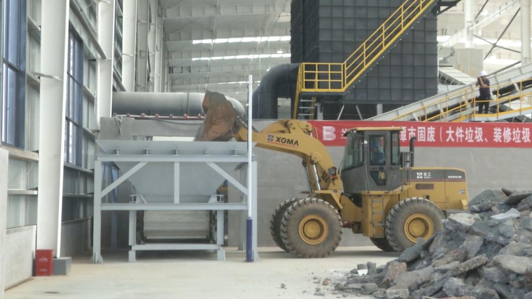 光大環(huán)保能源(鷹潭)有限公司生產(chǎn)運行負責(zé)人 羅曾:這是我們一條7萬噸的裝修垃圾生產(chǎn)線,每年處理7萬噸,這是入料口,入料口有一個除塵的噴霧裝置,這邊是3萬噸一個建筑垃圾的生產(chǎn)線,進料之后主要是這個篩分機,篩分機到破碎,破碎然后到最后是三種骨料出來,可做到可再生利用。