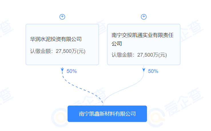 南寧交投凱鑫新材料有限公司由華潤水泥投資有限公司(現(xiàn)更名為華潤建材科技控股有限公司)、南寧交投凱通實業(yè)有限責(zé)任公司各控股50%。