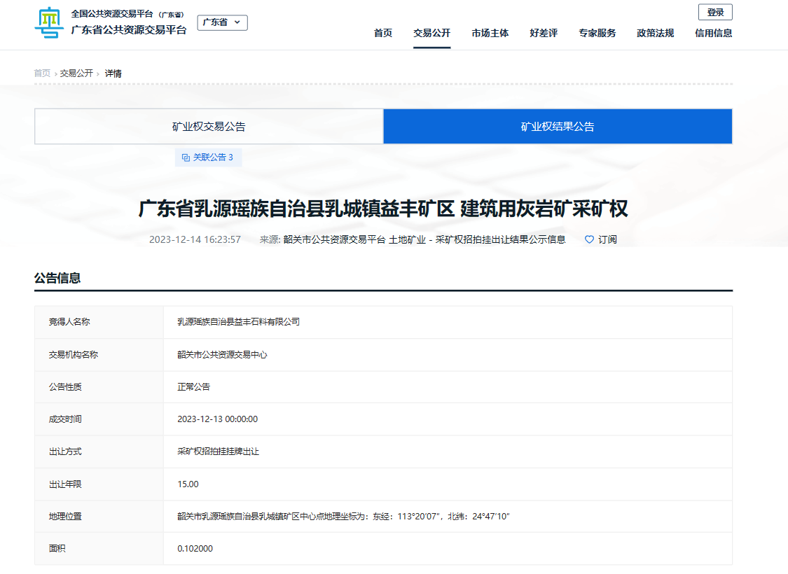 2022年3月16日,南寧凱潤投資有限公司以2.8億元競得上林縣三里鎮(zhèn)韋寺村古方莊建筑石料用灰?guī)r礦采礦權(quán)。該礦資源儲量10649.9萬噸,生產(chǎn)規(guī)模600萬噸/年,出讓年限19年