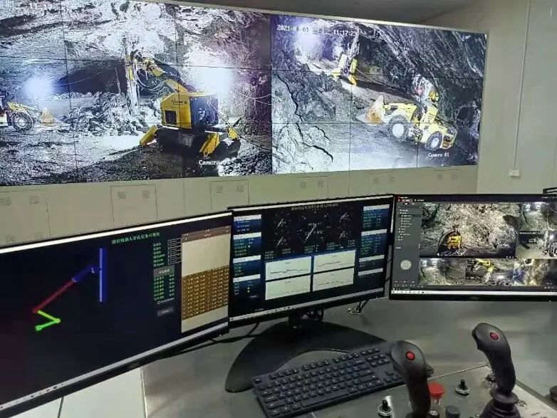 在浙江蘭溪市聚能礦業有限公司(以下簡稱稱聚能礦業)的智能化綠色礦山系統中,記者看到,在指揮中心大屏幕上可以看到井下的實時畫面,工作人員通過操作臺上的按鍵就能控制,就像遙控機打游戲一樣,直觀又方便。工作人員告訴記者,以往采礦中需要人工進行的打鉆鑿巖、裝藥爆破、出礦、充填等步驟,如今都可通過操作鑿巖機器人、撬毛機器人、鏟運車、充填機器人完成,甚至礦石運輸也可實現井下“打車”。