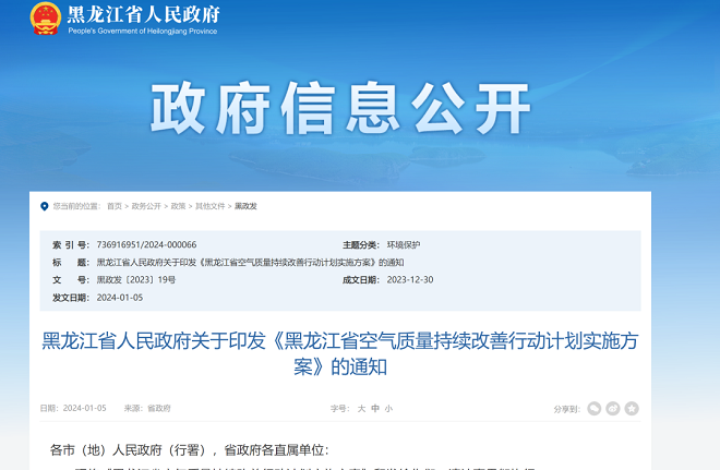 近日,黑龍江省人民政府印發(fā)《黑龍江省空氣質(zhì)量持續(xù)改善行動(dòng)計(jì)劃實(shí)施方案》,提出到2025年,全省地級及以上城市PM2.5濃度比2020年下降3.6%,重度及以上污染天數(shù)比率控制在0.7%以內(nèi);全省VOCs、氮氧化物重點(diǎn)工程減排量分別達(dá)到0.74萬噸、5.02萬噸。