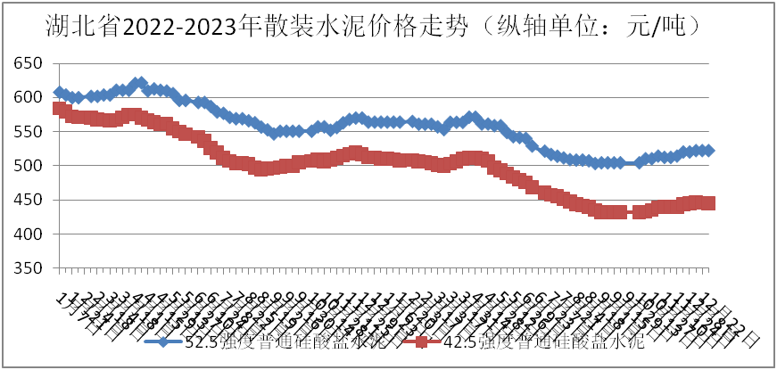 監(jiān)測數(shù)據(jù)顯示:12月份,42.5強(qiáng)度普通硅酸鹽水泥、42.5強(qiáng)度礦渣硅酸鹽水泥、52.5強(qiáng)度普通硅酸鹽水泥全省平均價格分別為:445.42元/噸、432.86元/噸、521.20元/噸,環(huán)比分別上漲:1.34%、1.39%、1.60%;同比分別下跌:13.41%、13.74%、7.98%。具體價格走勢情況如下圖: