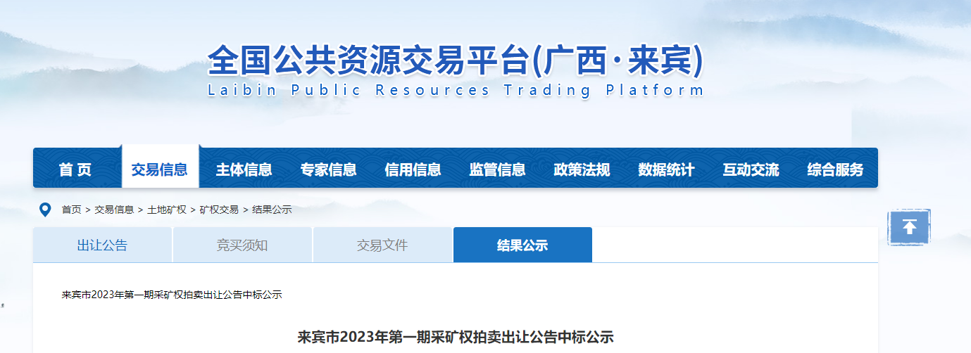 來賓市2023年第一期采礦權拍賣出讓公告中標公示