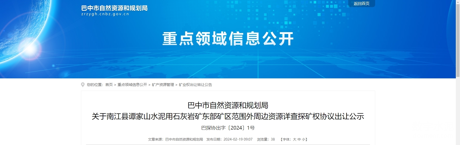 巴中市水泥用石灰?guī)r礦探礦權(quán)協(xié)議出讓公示