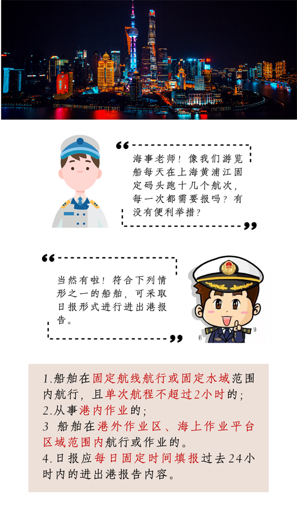 符合下列情形之一的船舶,可采取日?qǐng)?bào)形式進(jìn)行進(jìn)出港報(bào)告: