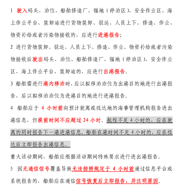 船舶有下列情形的,應(yīng)當(dāng)向預(yù)計(jì)駛離或者抵達(dá)地海事管理機(jī)構(gòu)報(bào)告船舶進(jìn)出港信息:
