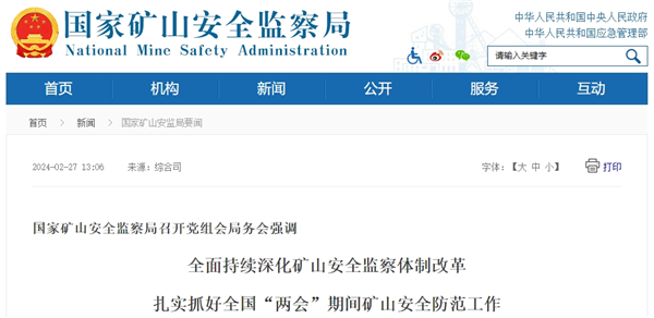 2月26日,國(guó)家礦山安全監(jiān)察局召開黨組會(huì)和局務(wù)會(huì),研究部署當(dāng)前和全國(guó)“兩會(huì)”期間安全防范重點(diǎn)工作。