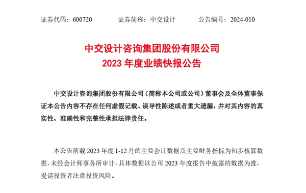 3月12日,A股上市公司中交設(shè)計發(fā)布2023年全年業(yè)績快報。中交設(shè)計指出,2023年公司實現(xiàn)營業(yè)收入135.11億元,同比增長69.45%;歸屬于上市公司股東的凈利潤17.66億元,同比增長1.33倍。 影響經(jīng)營業(yè)績..