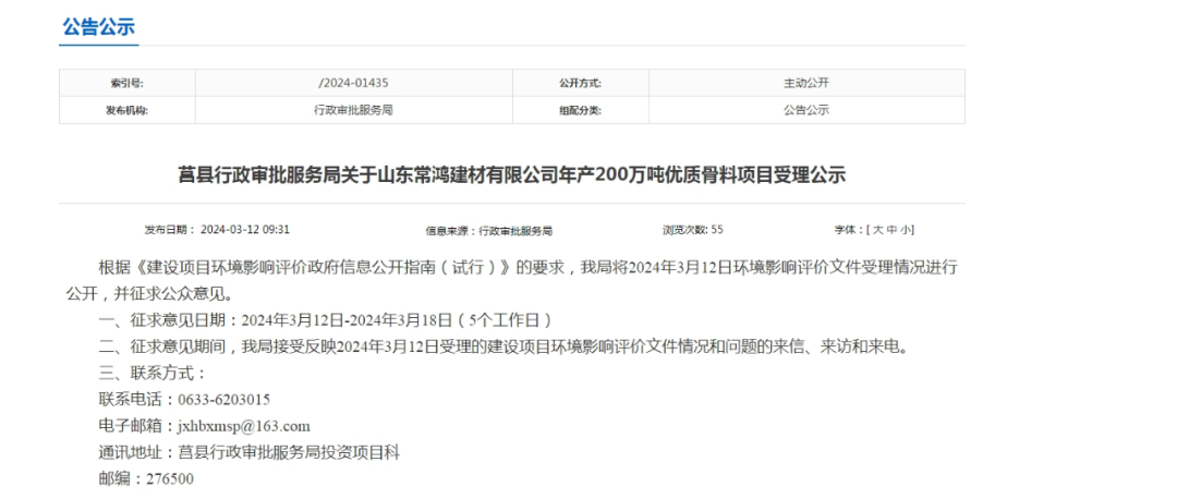 3月12日,山東常鴻建材有限公司年產(chǎn)200萬噸優(yōu)質(zhì)骨料項(xiàng)目環(huán)評(píng)受理公示。據(jù)介紹,項(xiàng)目位于山東省日照市莒縣小店鎮(zhèn)公家莊村225省道路西,項(xiàng)目總投資5860萬元,其中環(huán)保投資50萬元。項(xiàng)目占地面積63..