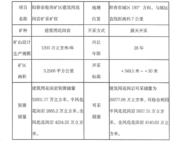 陽春市輪崗礦區建筑用花崗巖礦采礦權基本情況: