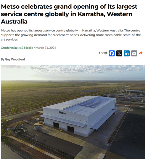 美卓在西澳大利亞州卡拉塔開設(shè)了全球最大的服務(wù)中心。該中心支持客戶不斷增長的需求,為其提供更可持續(xù)的、最先進的服務(wù)。