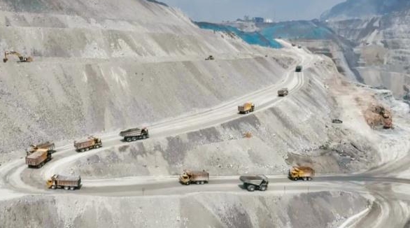 一輛輛如螞蟻般大小的貨車正來回運(yùn)輸?shù)V石 資料圖