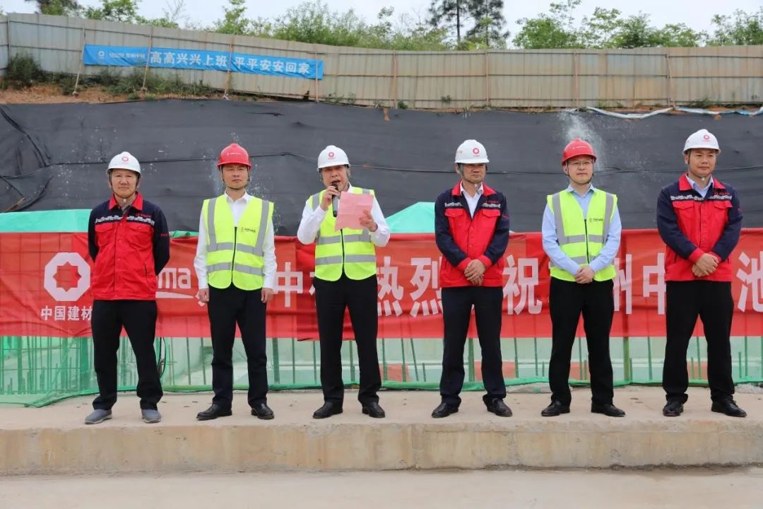 貫通儀式由池州中建材新材料有限公司黨支部書記、總經(jīng)理、項目現(xiàn)場指揮部指揮長遲廣來主持,中材國際(南京)副總經(jīng)理、池州項目副指揮長陳淮,蘇州中材副總經(jīng)理、池州項目常務(wù)副指揮長谷建可,以及中鐵六局、江蘇銳成相關(guān)領(lǐng)導(dǎo)出席貫通儀式,共同見證了這一重要時刻。