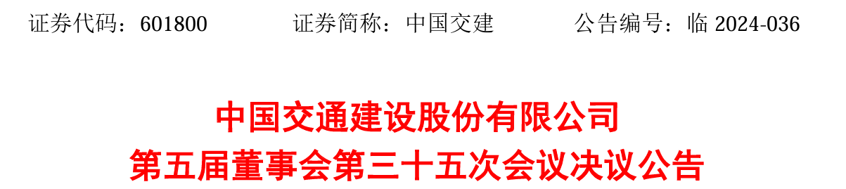 2024年6月18日,中國交通建設(shè)股份有限公司(以下簡稱中交集團)發(fā)布中國交通建設(shè)股份有限公司第五屆董事會第三十五次會議決議公告。