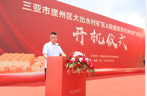 三亞抱鼓土砂石開采有限公司總經(jīng)理張晉源在講話中表示三亞市崖州區(qū)大出水村礦區(qū)A段建筑用花崗巖礦,總儲(chǔ)備量高達(dá)923.7萬立方米,年產(chǎn)量可達(dá) 200萬噸,主要產(chǎn)品為機(jī)制砂、普通碎石、精品碎石。截止目前已累計(jì)完成6個(gè)億的投資,預(yù)計(jì)年稅收 1600 余萬,礦區(qū)內(nèi)的花崗巖石料能夠滿足建筑領(lǐng)域?qū)Ω哔|(zhì)量石料的需求,這一豐富的資源儲(chǔ)備為當(dāng)?shù)啬酥梁D鲜〉慕?jīng)濟(jì)發(fā)展提供了堅(jiān)實(shí)的物質(zhì)基礎(chǔ),并將引進(jìn)先進(jìn)的技術(shù)和設(shè)備,提高開采效率和產(chǎn)品質(zhì)量,為市場(chǎng)提供更多優(yōu)質(zhì)的砂石骨料產(chǎn)品,此次試運(yùn)行開機(jī)儀式的成功舉行,正是對(duì)礦區(qū)資源優(yōu)勢(shì)的有力證明。