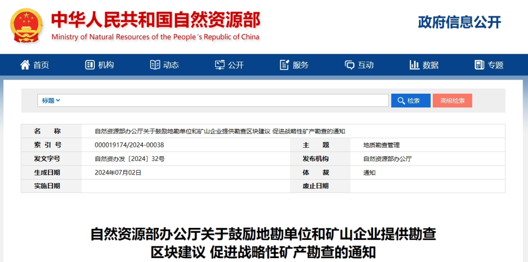 為深入貫徹習近平總書記給山東省地礦局第六地質大隊重要回信精神,落實黨中央、國務院決策部署,加快推進新一輪找礦突破戰略行動,支撐戰略性礦產增儲上產,提高國內資源保障能力,現就鼓勵地勘單位和礦山企業提供勘查區塊建議、促進戰略性礦產勘查有關工作通知如下。