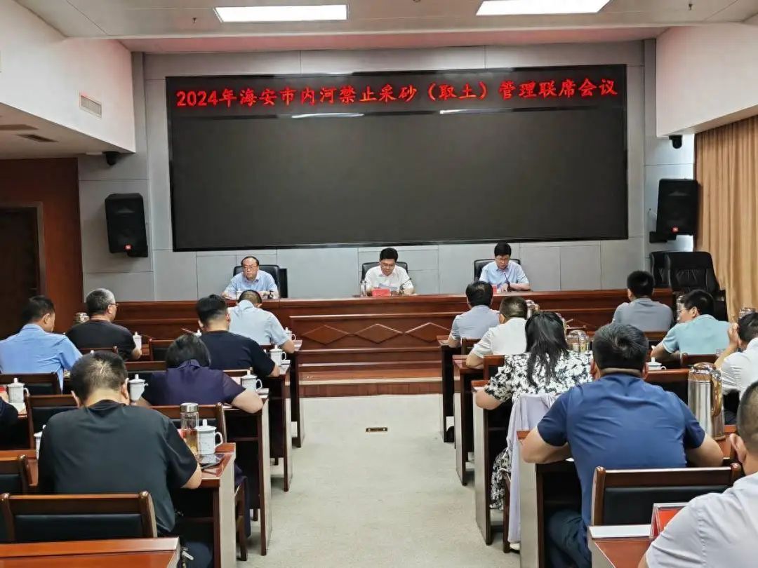 7月9日,江蘇海安市召開全市內河禁止采砂(取土)管理聯席會議。海安市副市長周小軍出席會議并講話,市政府辦副主任陳希韓主持會議,市水利局黨組書記、局長陳峰對全市禁采工作進行部署。