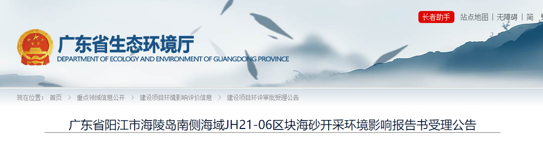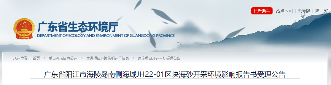 近日,廣東省生態環境廳發布陽江市海陵島南側海域JH21-06區塊、JH22-01區塊2宗海砂礦權環境影響報告書。根據此前公布的環境影響報告書顯示,2宗海砂開采項目合計年開采量1430萬方。