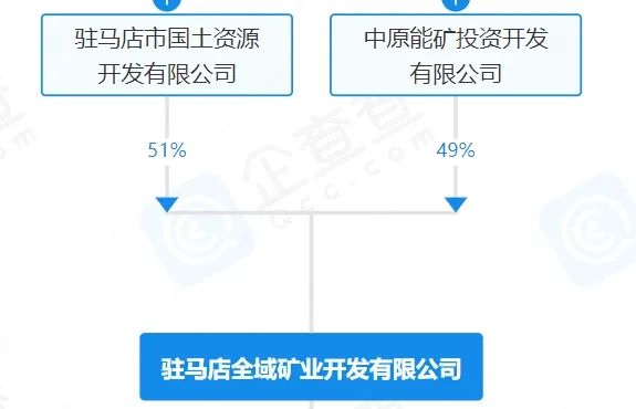 據了解,競得企業駐馬店全域礦業開發有限公司成立于2023年12月06日,是由駐馬店市國土資源開發有限公司控股51%,中原能礦投資開發有限公司控股49%的國有企業。