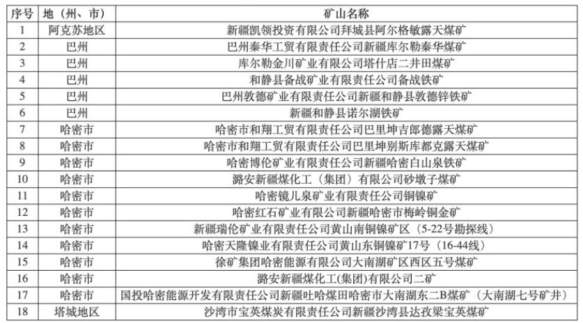 2024年第二批納入自治區綠色礦山名錄的18家礦山名單。自治區自然資源廳提供